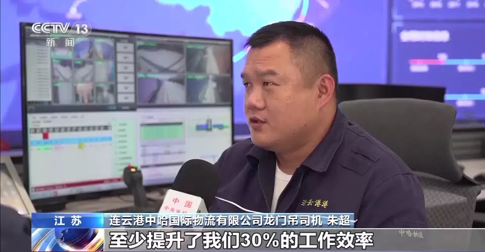 连云港中哈国际物流有限公司龙门吊司机 朱超:自从用了这套系统以后,我在这里一个人可以同时控制三台轨道吊,至少提升了30%的工作效率,而且现在我不用每天来回爬上爬下,来回换龙(门吊),也减少了我们的工作强度。